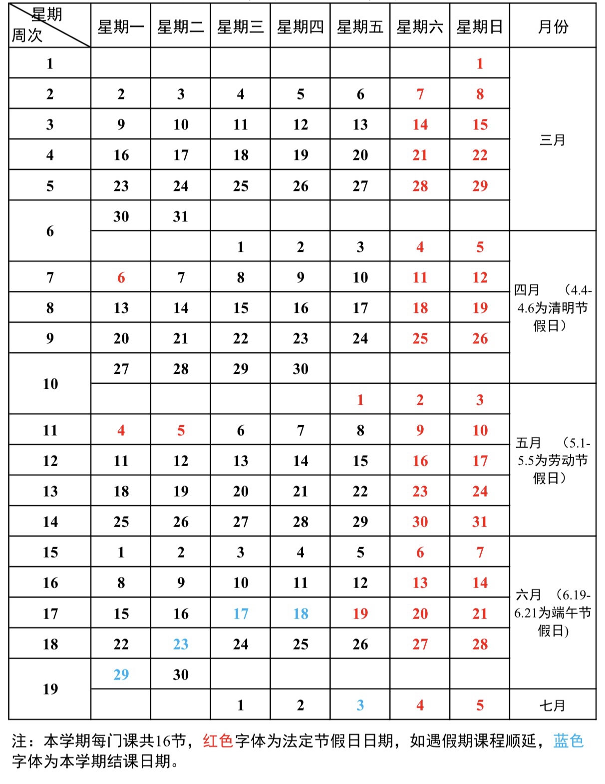 2026年春季校历
